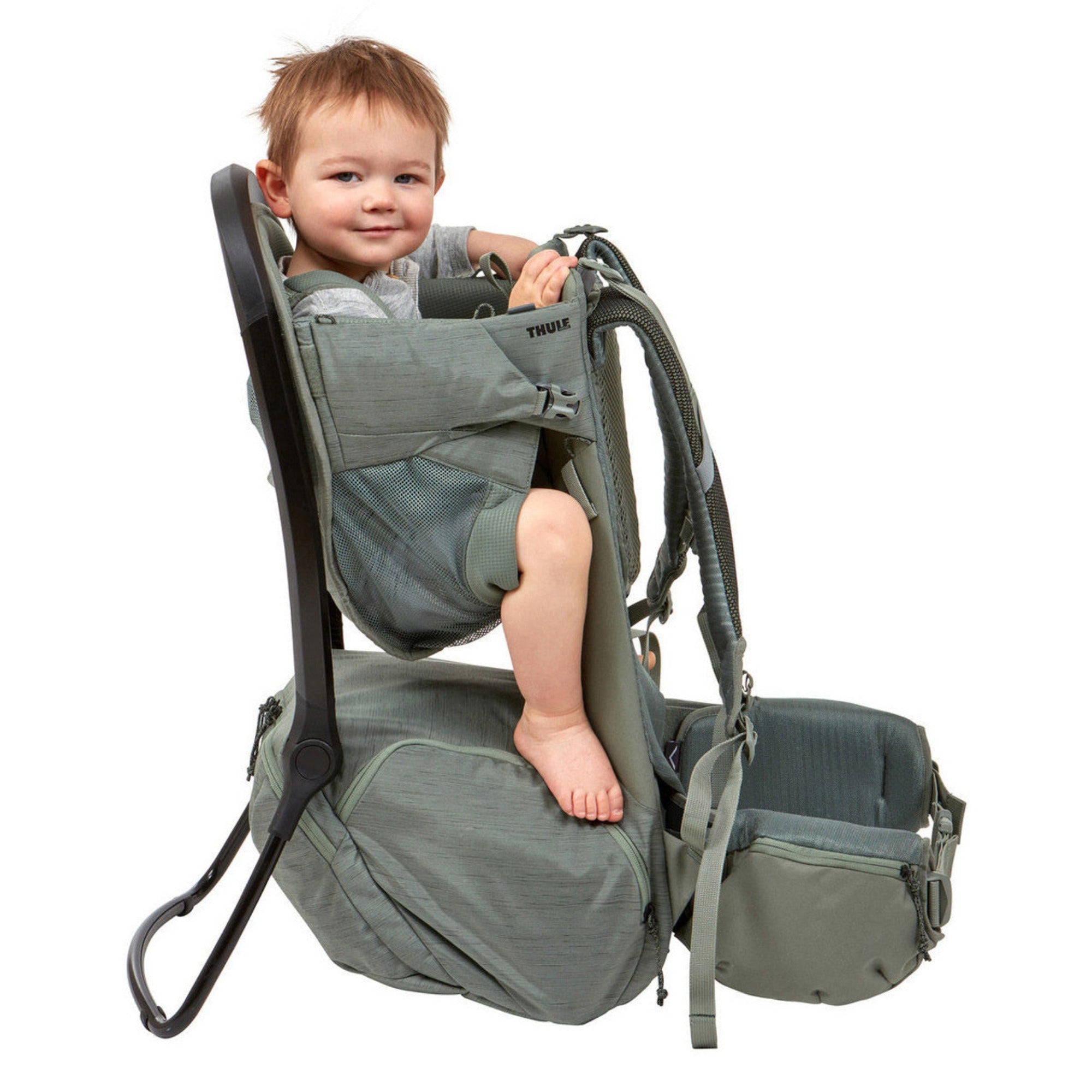 This child carrier backpack with a machine washable child seat provides under leg support to maximize comfort on any adventure!